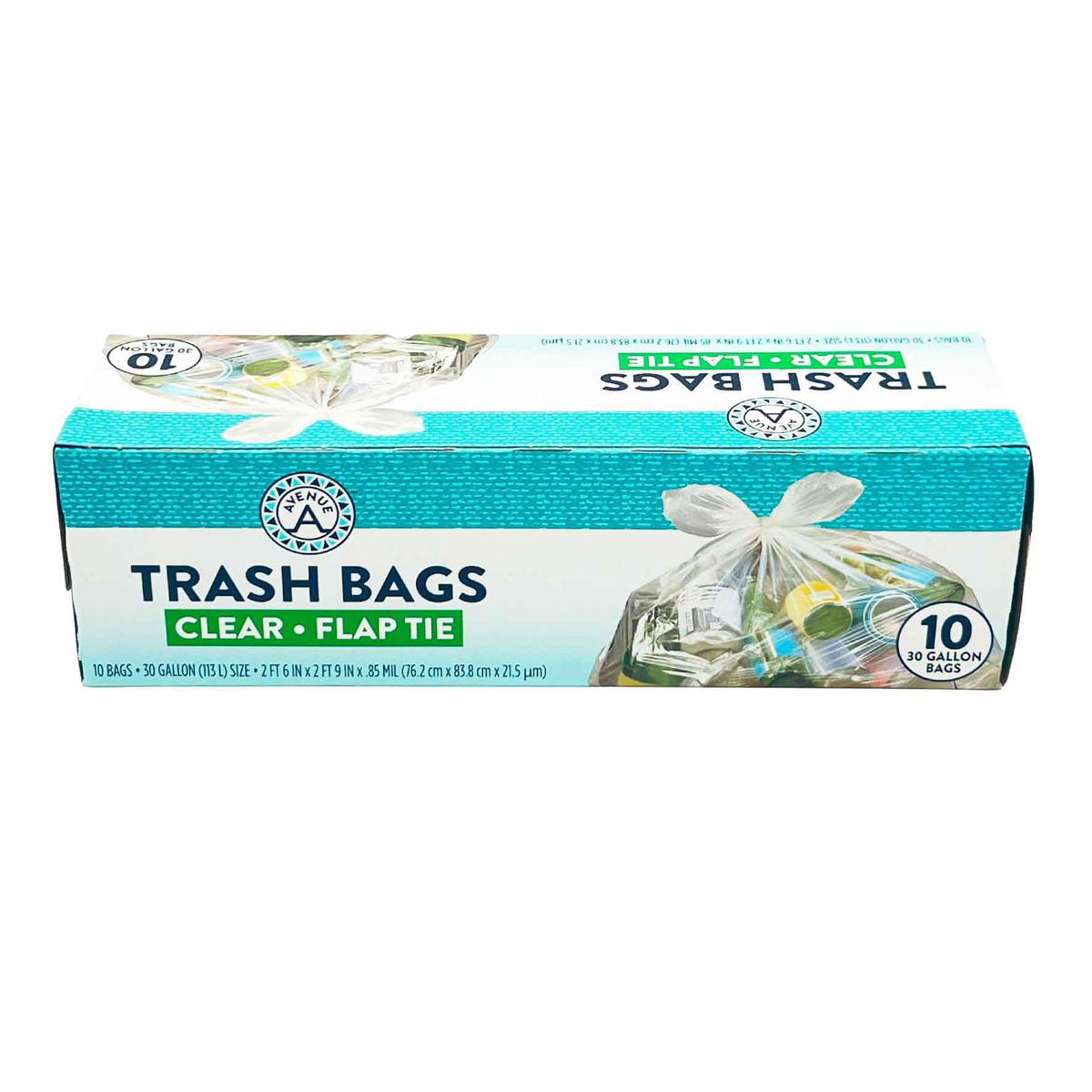 Aveneu Trash Bags Clear Falp Tie 10Bags 30 Gallon